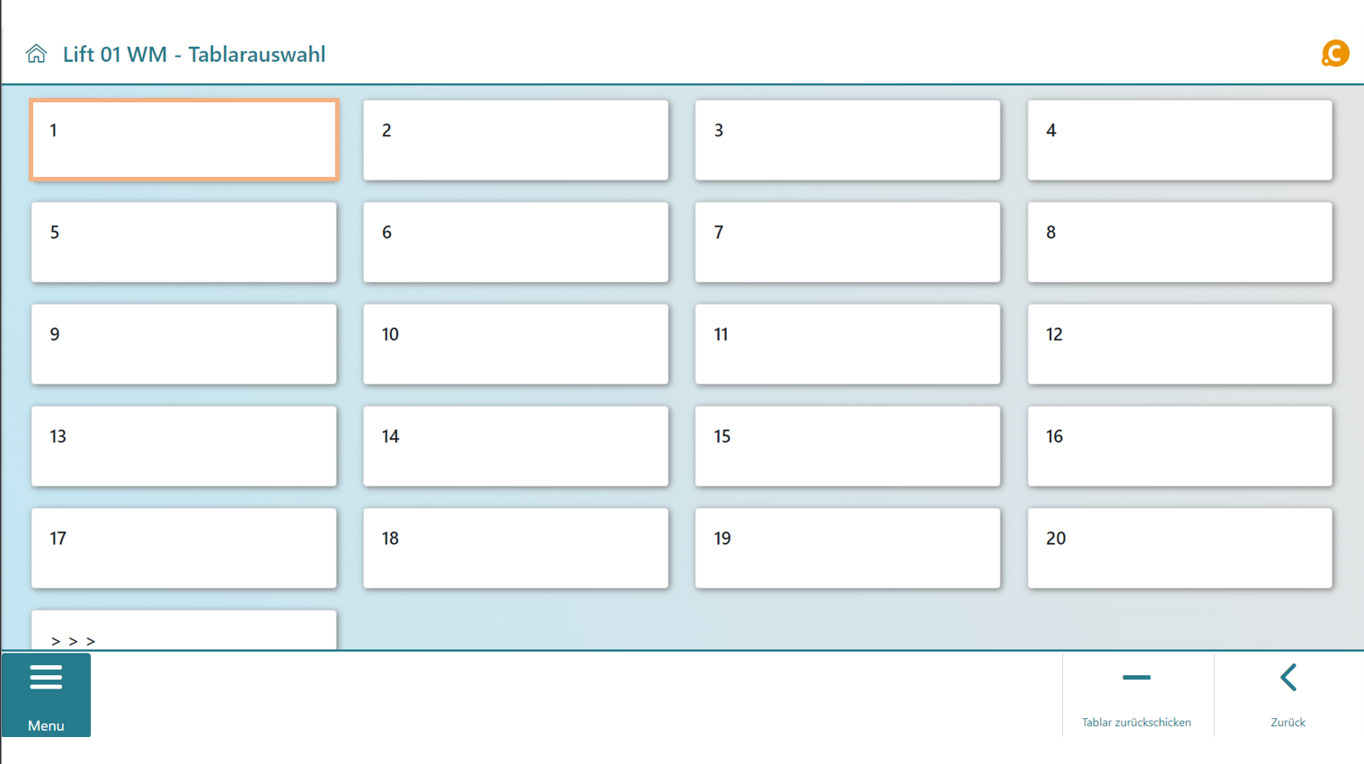 Nun kann das Tablar ausgewählt werden, welches angefordert oder untersucht werden soll. Im Beispiel wird Tablar 1 ausgewählt.