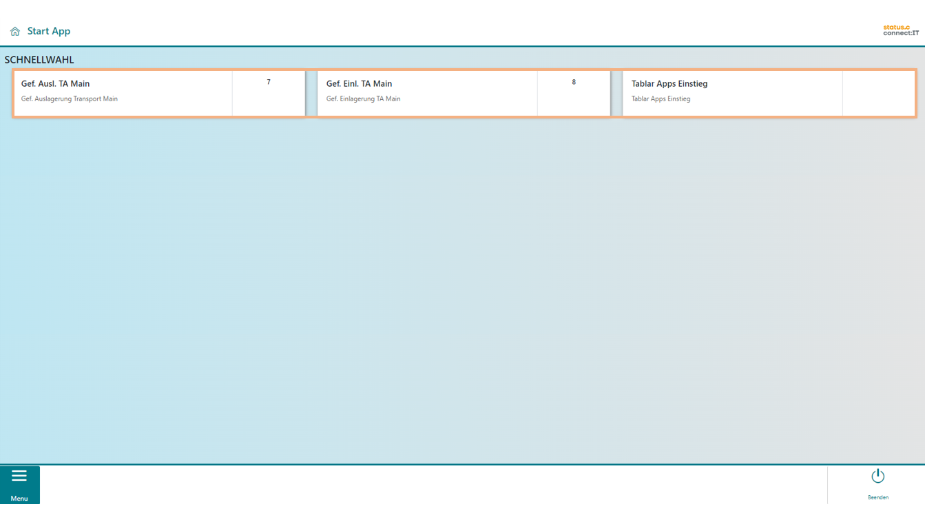 | Der Button "Abbrechen" bricht alle Fahraufträge ab und das Bild wechselt zurück zum Arbeitsvorrat. |