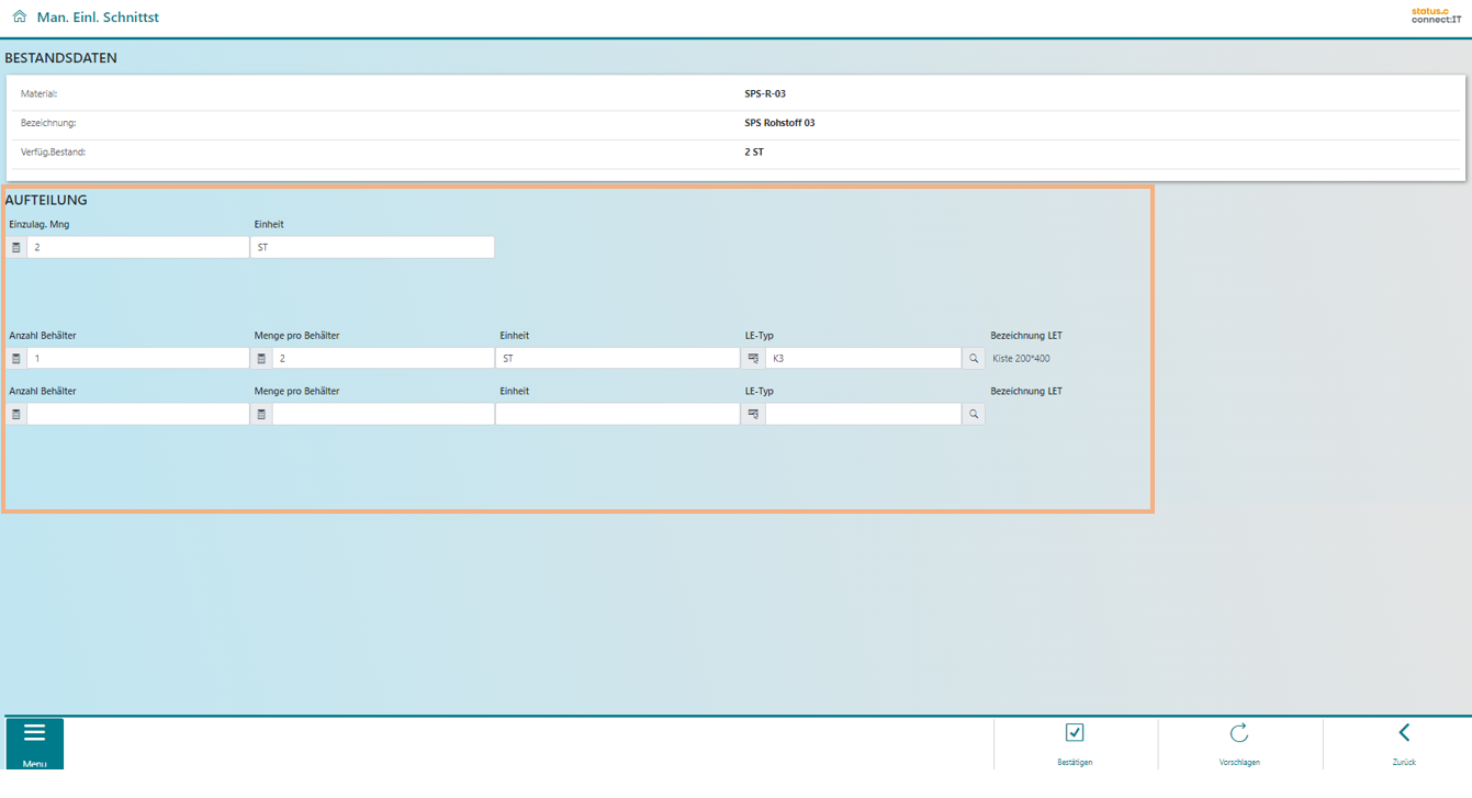 Bei Einlagerungen ist es möglich, dass das Material, welches sich auf einer Schnittstelle befindet, manuell über SPS EasyConnect eingelagert wird.