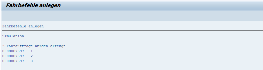 | Simulation | Ist das Simulationskennzeichen gesetzt, so wird lediglich die Erstellung des Fahrauftrages simuliert. So können Sie ihre Varianten testen. |