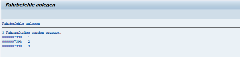 | Fahrauftragsbewegung | ja | Die Fahrauftragsbewegung des Fahrauftrages, welchen Sie anlegen wollen, z.B. '001' für Produktionsversorgung. |