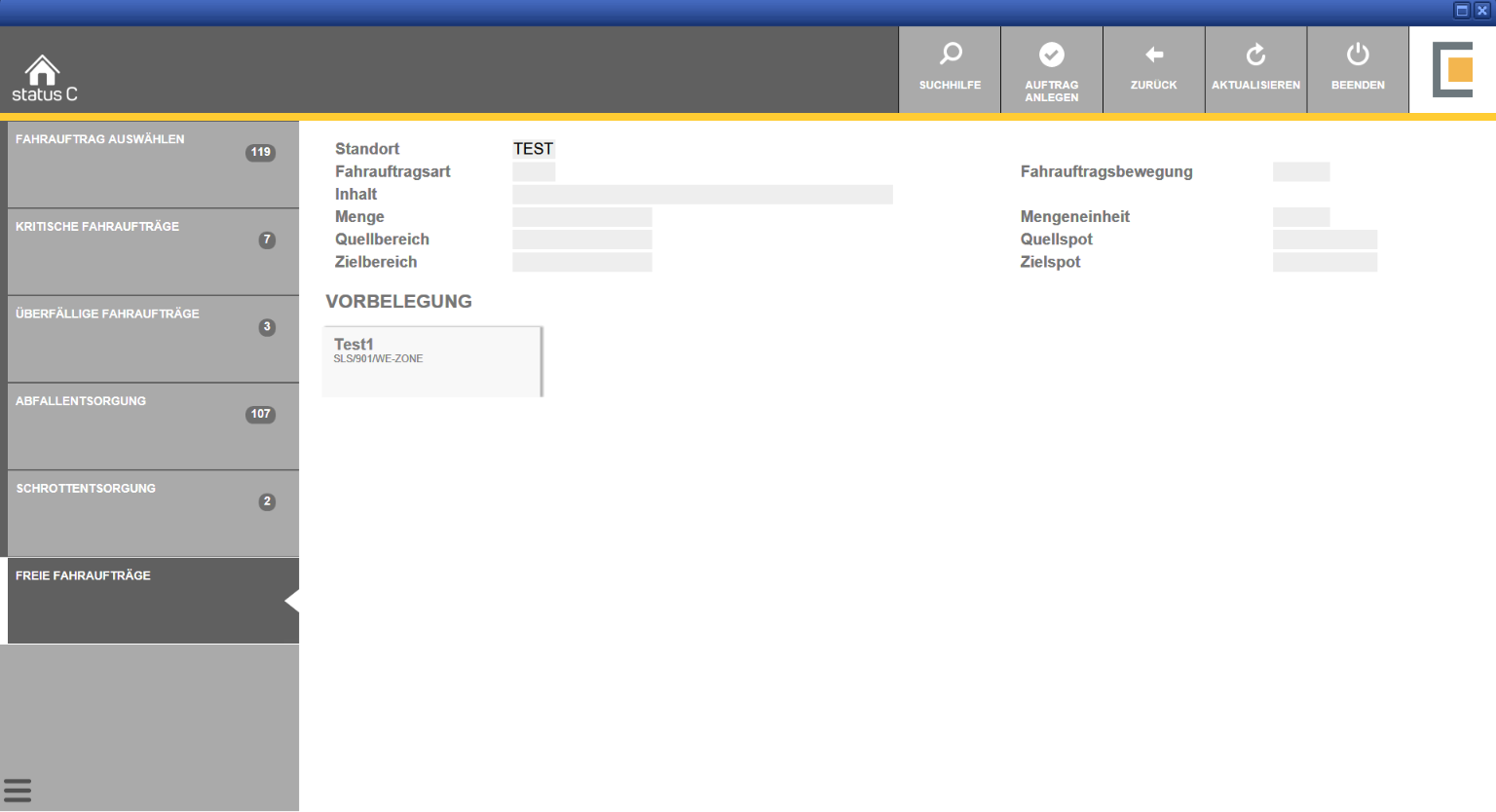 | Zielspot | ja | Der Ort in dem das Material transpotiert werden soll. Er muss sich im Zielstaplerbereich befinden. Benutzen Sie die F4-Hilfe. |