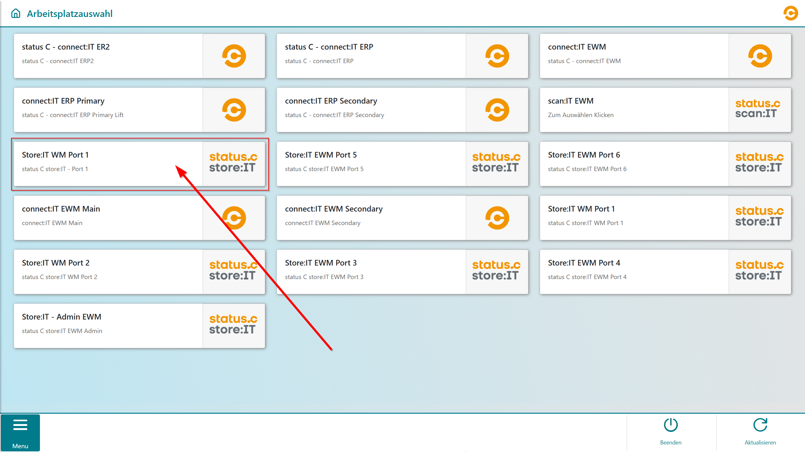 Anschließend muss der Port ausgewählt werden. Im Testmodus kann jeder beliebige Port ausgewählt werden.
