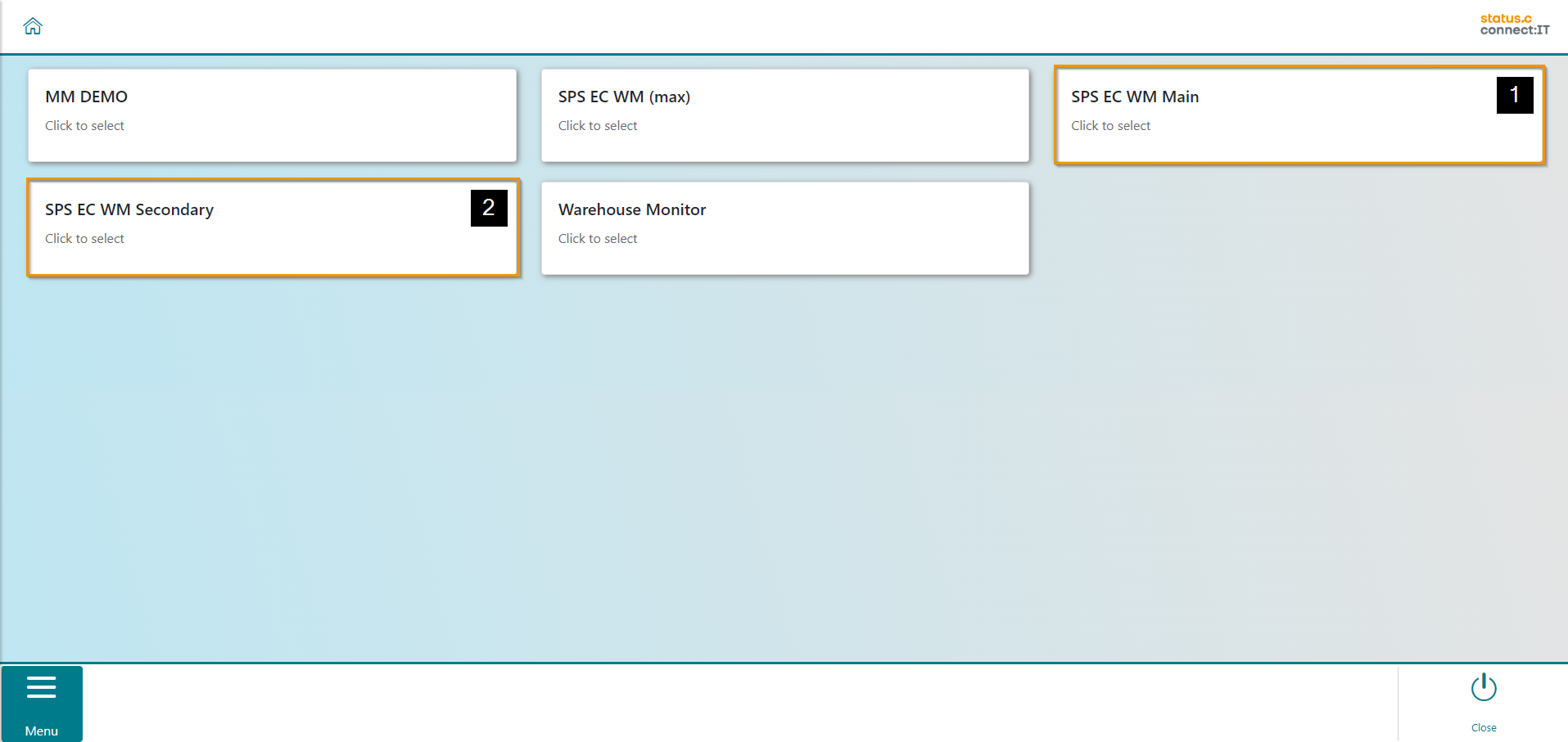 The main and secondary lifts are displayed in the workstation selection. Click or touch on the respective lift - Main (1), Secondary (2) - to start the application of the corresponding lift.