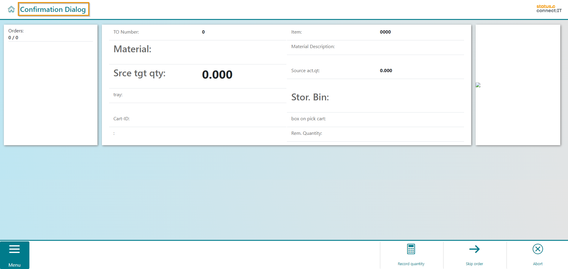 ![]() | The "Confirm" button confirms the transport order and thus the associated transfer order/transfer order item. The next order is approached. If no further orders are selected, the screen switches back to the worklist. |