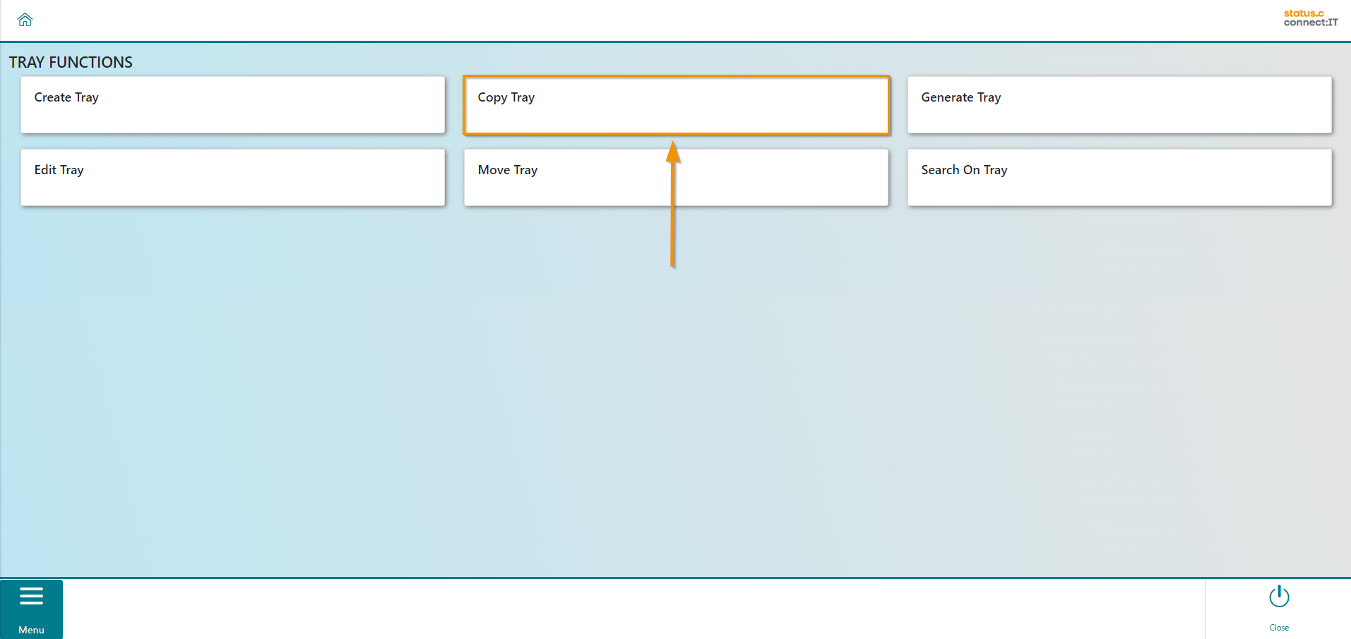 The "Copy Tray" function is useful if there are several trays with the same bin layout. The corresponding app is available in the Tray Apps overview.