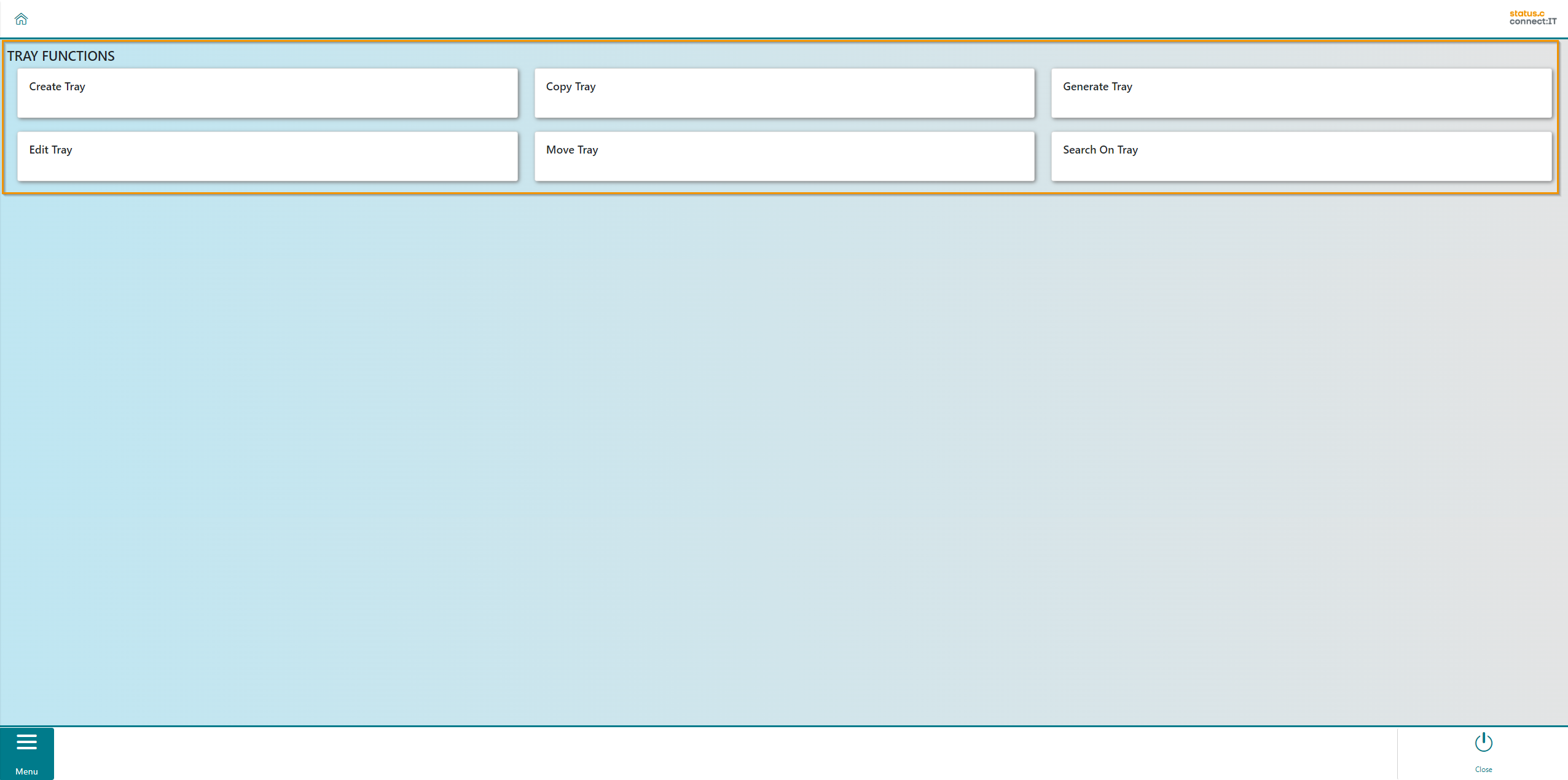 Tray Apps contains several functions for managing trays. These include creating, copying, generating, editing and moving trays. There is also a function for searching on trays.